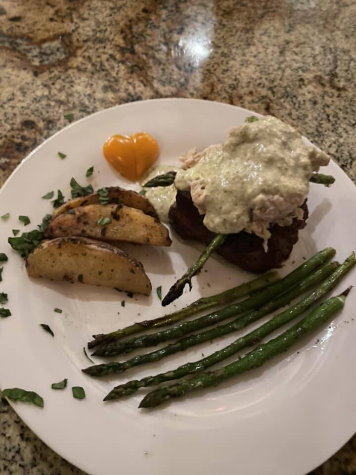 Biċċa laħam mill-aqwa, imsajra kif jogħġob lill-klijent u mħallta ma' zlazi tal-pan b'togħma rikka. Jingħata ma' ħaxix tal-istaġun u ħaxix tal-amid magħżul mill-kok. Din l-ikla ta' filgħaxija tagħtik l-atmosfera ta' steakhouse mill-aqwa imma fil-kumdità tad-dar mikrija.