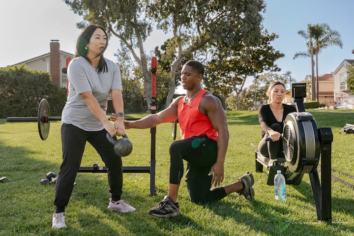 Iddisinjata għal sa 3 persuni, din is-sessjoni tipprovdi kundizzjonament kardjo billi tinkorpora ħbula tal-battalja, blalen tal-mediċina, kettlebells u magna tal-qdif. It-taħriġ tas-saħħa tal-ġisem kollu huwa inkluż ukoll, bl-użu ta' taħlita ta' barbells, ċangaturi, sliders, ab roller u tagħmir TRX. Dan l-eżerċizzju fid-dar jew fil-post huwa mfassal biex jakkomoda kwalunkwe livell ta' fitness, bit-tagħmir kollu pprovdut.