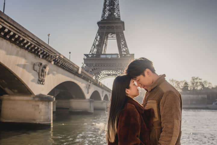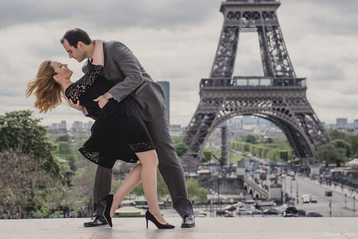 Sessjoni ta' teħid ta' ritratti professjonali li tibda f' nofs il-Pont Bir Hakeim, imbagħad fuq id-Docks, u tispiċċa madwar it-Trocadero. 30 ritratt editjat.