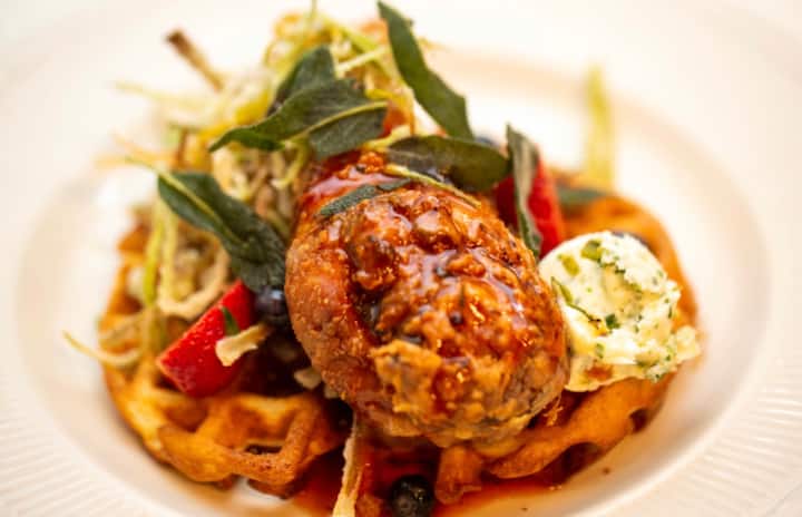 Ikla f' bar brunch maħdum minn kok b' waffles jew toast Franċiż, bajd, zalzett, bacon, patata, frott, jogurt, tiġieġ imqadded, zalza sħuna tal-għasel, ħxejjex tal-kollard tad-dundjan u frak krema.