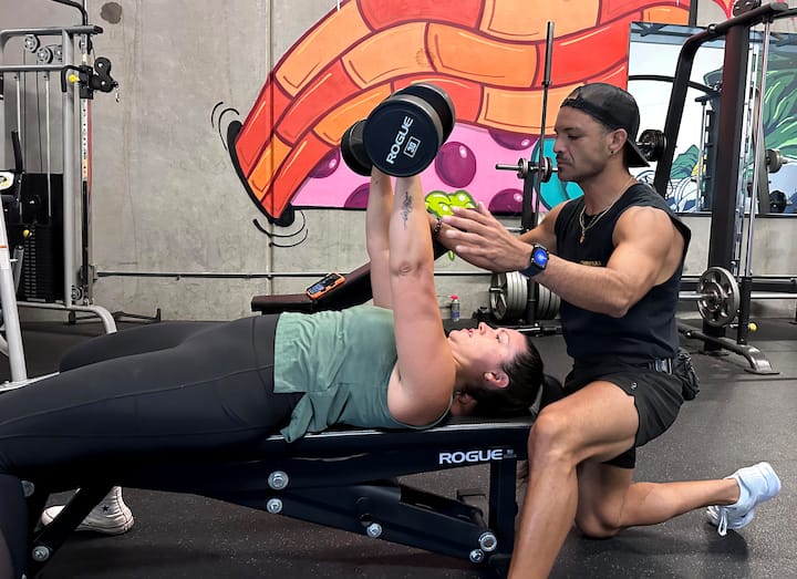 Għamilt valutazzjonijiet tal-fitness u eżerċizzji tal-klijenti bħala ħarrieġ f' Equinox ġewwa Glendale, CA