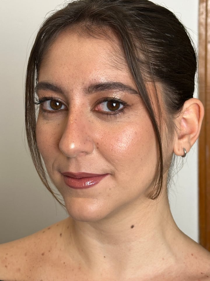 Din is-sessjoni tal-makeup hija mfassla biex ittejjeb l-għajnejn u x-xufftejn, ittejjeb il-faċilitajiet u toħloq effett ibbilanċjat u mgħammar sew, adattat għall-ilbies ippjanat għal din l-okkażjoni.