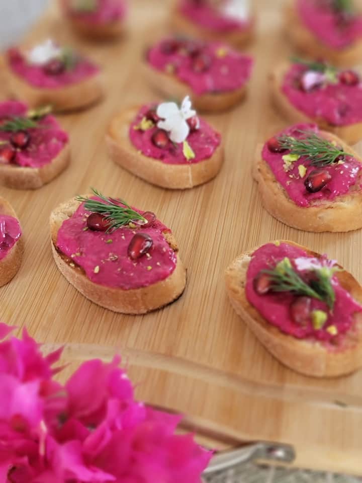 Immaġina togħma u bżieżaq żgħar b'tokk ta' eleganza. Il-kanapès b'togħma tajba jistgħu jinkludu blinis tas-salamun affumikat jew pâté tal-pitravi u l-larinġ tal-demm f'kikkri frisk, pereżempju. Fost l-affarijiet l-oħra li tista' tqiegħed fuq il-mejda hemm l-arancini tal-mozzarella, il-biċċiet tal-mozzarella u t-tadam imnixxfa u l-fritters taż-żukkini bil-feta. L-avveniment jintemm b'għażla ta' makaruni kkuluriti li tista' tgawdi magħhom Cava Brut kiesaħ jew tazza inbid rożè frizzanti.