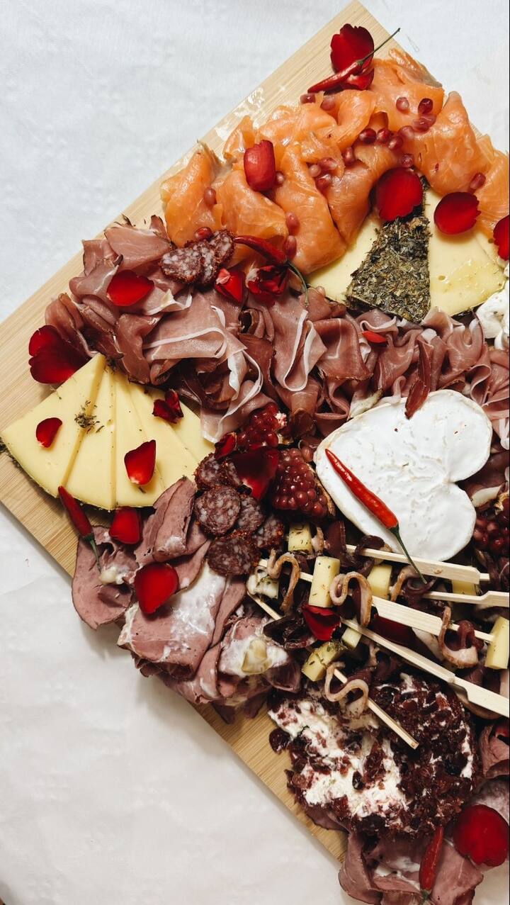 Jinkludi ġobon artiġjanali, charcuterie, frott staġonali, dips Mediterranji magħmula d-dar, ħxejjex friski mhux ipproċessati, lewż inkaljat u crackers gourmet.