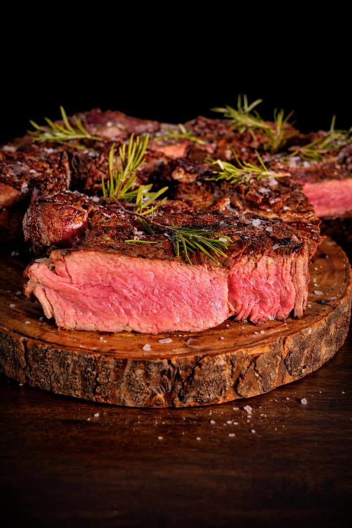 Menu ta' 5 platti fejn insajru fuq il-faħam il-laħam taċ-ċanga, il-majjal Iberjan u l-ħaxix frisk tal-istaġun.