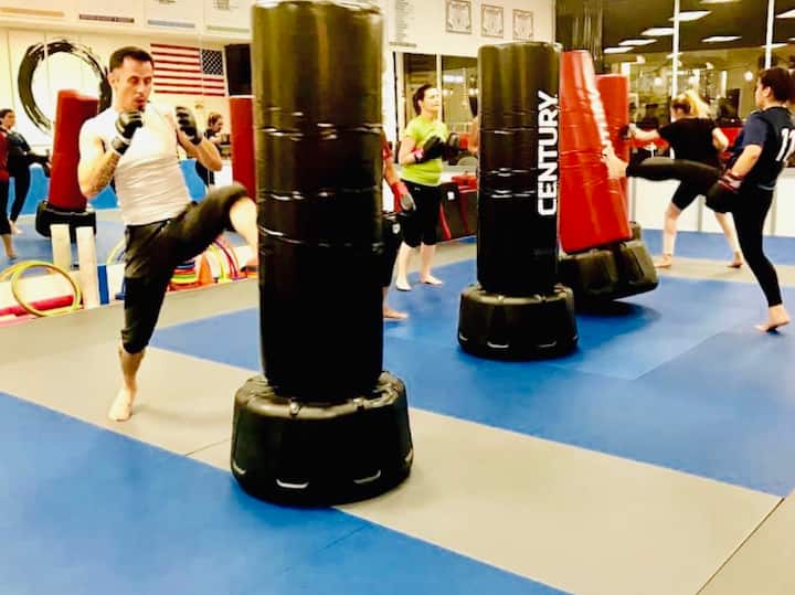 Ħu sehem f'lezzjoni mimlija ħajja u ħafna ċaqliq. Tgħallem kif tagħti daqqiet u daqqiet tas-sieq tajbin, flimkien ma' għadd ta' kombinazzjonijiet differenti fuq il-boroż tat-taħriġ. Il-lezzjoni tibda b'xi eżerċizzji u l-użu ta' piżijiet ħfief.