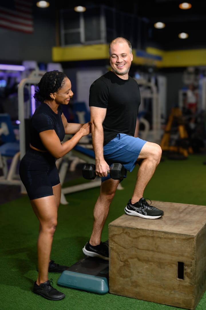 Is-sessjoni ta' eżerċizzju tiegħek hija kompletament personalizzata għal-livell u l-għanijiet tal-fitness tiegħek u tinkludi movimenti ta' saħħa funzjonali, taħriġ tal-qalba, u coaching personalizzat biex jgħinek tħossok kunfidenti, appoġġjat, u sfidat.