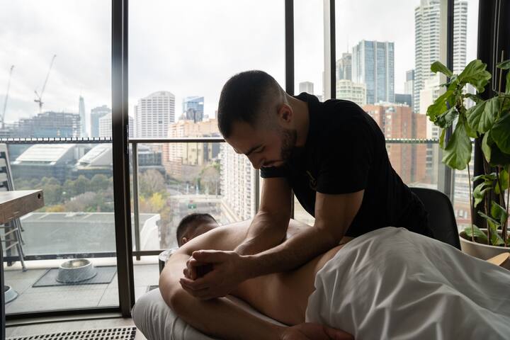Sessjoni mmirata ta' fiżjoterapija/mijoterapija ffukata fuq it-taffija tal-uġigħ, it-tensjoni u d-disfunzjoni muskuloskeletali. Trattament mgħaġġel u effettiv li jinkludi terapija prattika, b'punturi xotti u tqegħid ta' tazzi fejn xieraq.