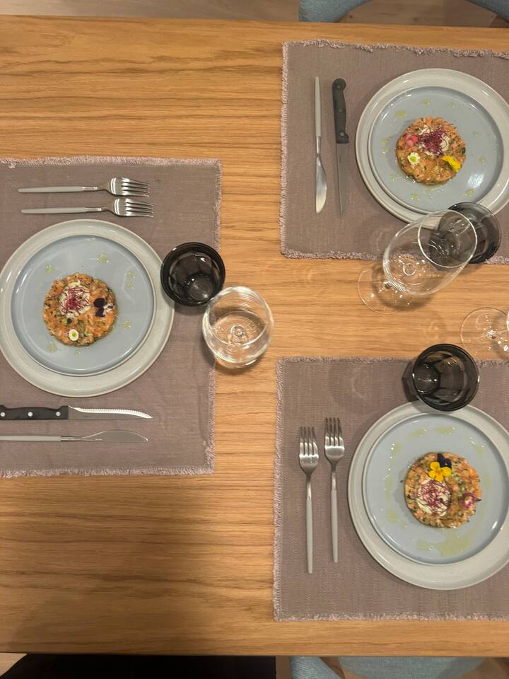Menu ta' 4 platti għad-dewqan, stil Mediterranju: ikel personalizzat, eleganti u raffinat, akkumpanjat minn servizz diskret u ta' livell għoli