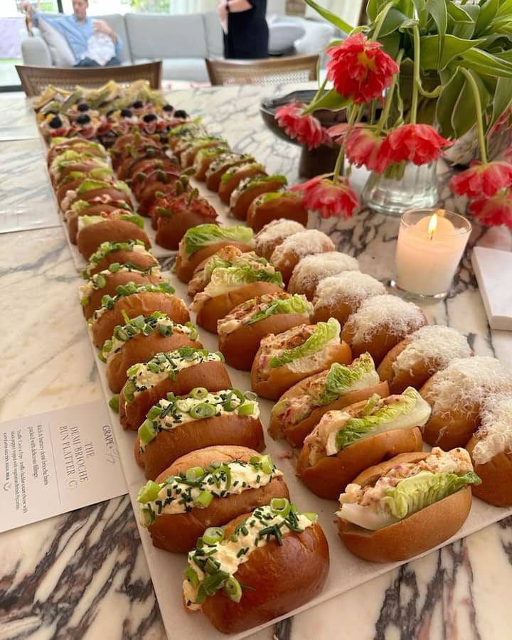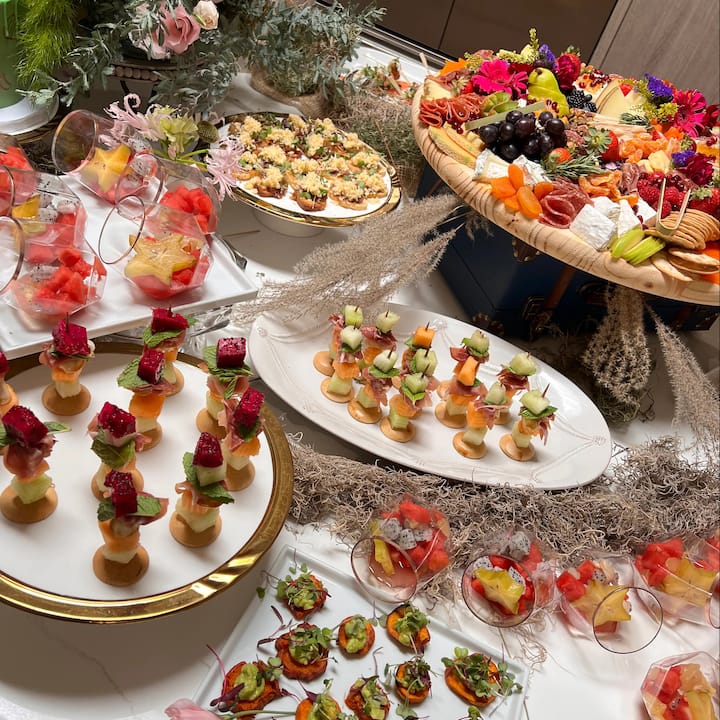 Jum il-logħba, imma b'togħma tajba ħafna. Festa ta' wiri kompletament stilizzata mifruxa u mwassla sal-bieb tiegħek — ikel ħafif, ikel li jittiekel bl-idejn, u ikel żgħir li jogħġob lil kulħadd, perfett biex tifraħ mal-grupp tiegħek. 6 oġġetti tal-ikel li jistgħu jinqasmu ma' oħrajn b'oġġetti tal-mejda li jintremew wara l-użu. Aħseb f'sliders, ġwienaħ jew satay, dips u stil magħżul apposta biex tibda l-logħba. Kollox jasal lest, lest biex tiekol jew biex terġa' ssaħħnu. Kulma għandek tagħmel hu li tagħfas play. Tajjeb ħafna għal 12-20 klijent.