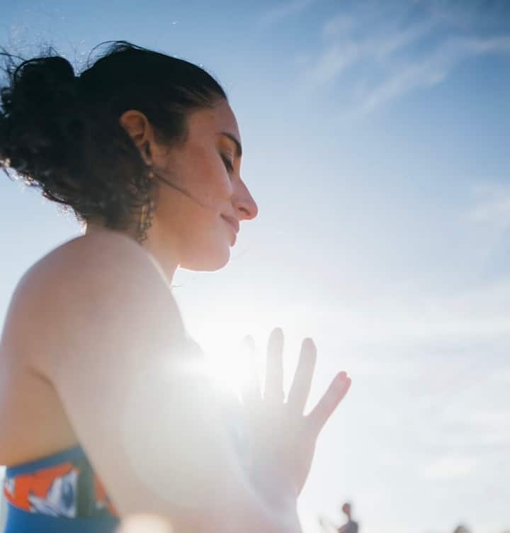 Gawdi sessjoni ta' grounding li tgħaqqad il-yoga, il-pilates u l-meditazzjoni ggwidata. Ħoss ir-riħ tal-oċean hekk kif tiċċaqlaq, imbagħad sib il-kwiet u ċ-ċarezza b' xogħol ta' nifs konxju fuq ir-ramel.