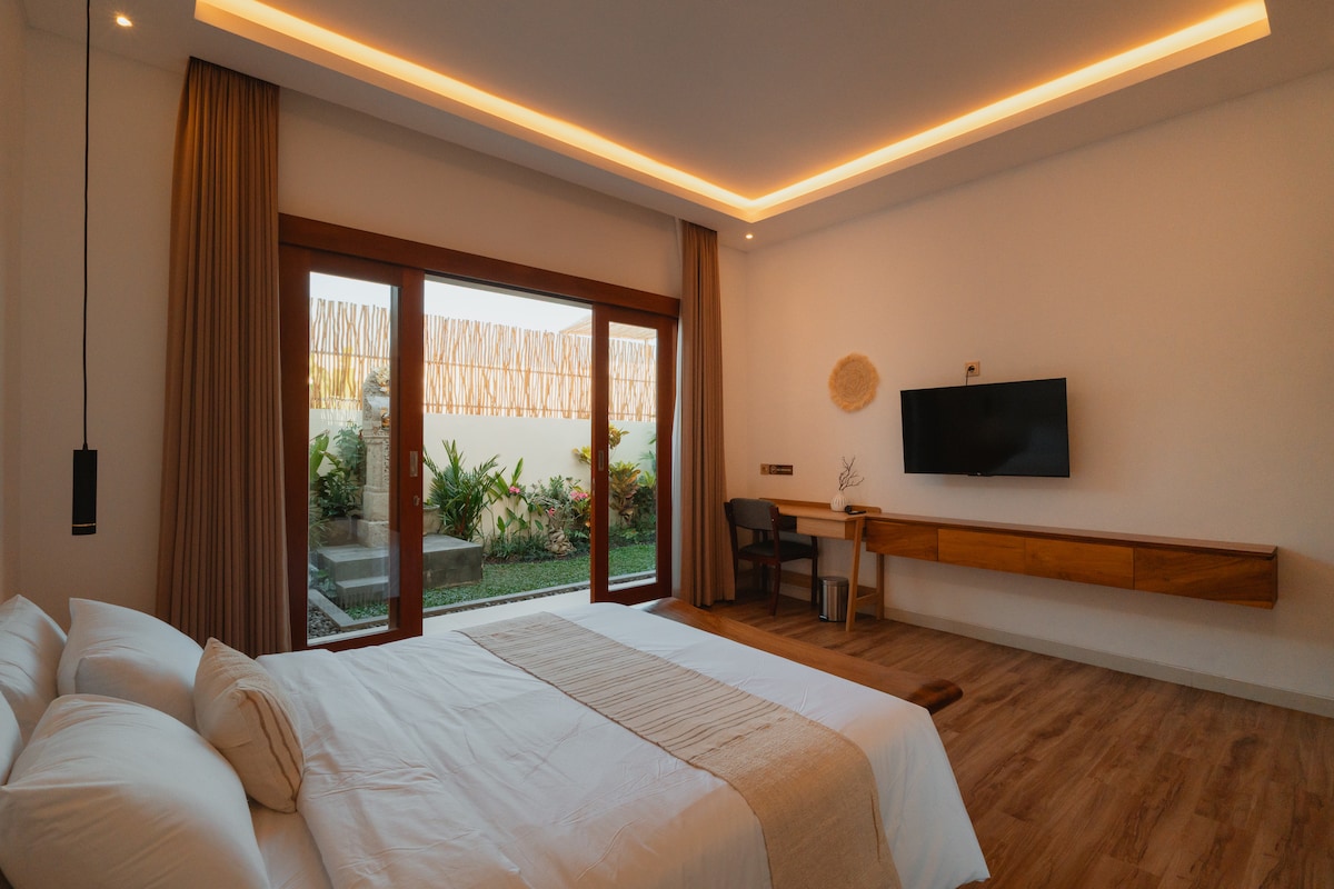 Ħudu faċli f 'din il-vaganza kwieta! Il-bungalows tagħna huma moħbija f' nofs l-għelieqi sbieħ tar-ross aħdar. Għandna ġnien miftuħ u aħdar u pixxina fejn tista' tirrilassa f' jum sħun. Il-bungalows għandhom soqfa għoljin sbieħ u mgħammra bil-kumditajiet kollha. Fi ftit minuti, tista' tkun fuq il-bajja f' Seseh jew Cemagi, u Canggu huwa biss 15-il minuta 'l bogħod. Qiegħed f' post kwiet, iżda ferm ċentrali! Żomm f' moħħok: hemm bini f' distanza qasira mill-bungalows.