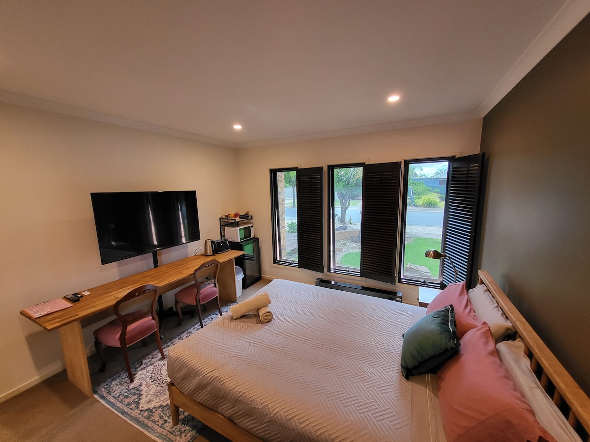 Leave the hustle and bustle of city life behind. This beautiful, spacious 1 bedroom retreat is perfect for couples and has everything you need to enjoy a stay in this beautiful region. Located on 110 acres of rolling hills just over an hour from Melbourne, it's the perfect place to relax and experience some peace and tranquility. Dale View is well hidden from the road, as you sweep up the driveway you will see kangaroos, birds and gum trees as the property unfolds in front of you.