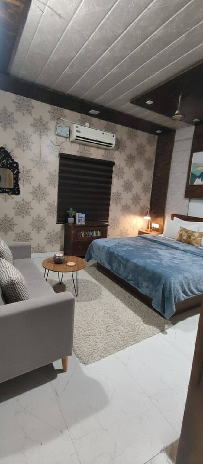Jekk jogħġbok kun infurmat/a li dan huwa appartament ta 'studio. Merħba fl-appartament tal-istudio tagħna li jinsab fil-viċinat vivaċi ta 'Bani Park ta' Jaipur. Dan l-istudjo eleganti b 'kamra tas-sodda waħda jwiegħed esperjenza sabiħa fil-qalba tal-Belt Roża. B 'sodda doppja' king' u sodda tas-sufan, l-appartament jakkomoda b' mod komdu tliet klijenti. Kunċettwalizzat u ddisinjat b 'benesseri f' moħħu, l-appartament huwa mdawwar b' kuluri newtrali u serħan il-moħħ. B 'mod notevoli, tiftaħar b' banju lussuż għar-rilassament tiegħek
