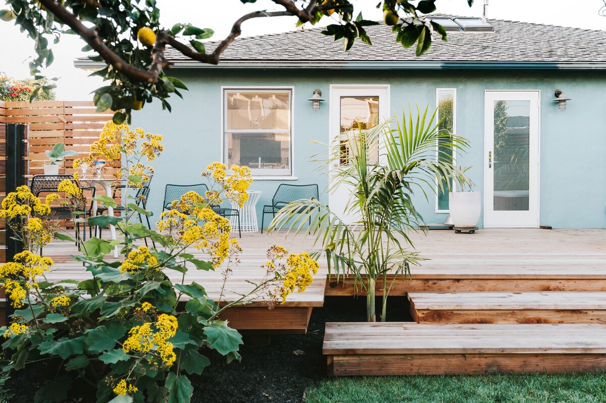 Studio tal-ġnien kwiet bi gverta mdawla bix-xemx