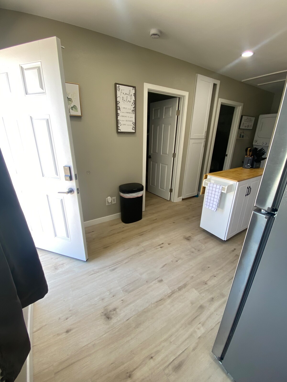 Insew it-tħassib tiegħek f' dan l-ispazju spazjuż u serju. Wara l-linji gwida tas-CDC, niżguraw li ż-żjara tiegħek hija waħda sigura u pjaċevoli. Mgħammra b 'cooker, microwave u magna tal-ħasil/dryer. Irrilassa f 'banju ta' daqs sħiħ, armarju walk-in u ħafna spazju biex taħżen l-oġġetti u t-tagħmir tiegħek. Gawdi l-hiking, ir-rota u l-golf tad-diski qrib minn Waller Park! Daħla u ħruġ privati. Jekk jogħġbok aqra r-regoli tagħna hawn taħt qabel tibbukkja: Mhux iktar minn 2 klijenti Parkeġġ ta' 1 karozza L-Ebda Parti Tpejjepx Ebda Pets Jaf ikollok tħallas iktar tariffi
