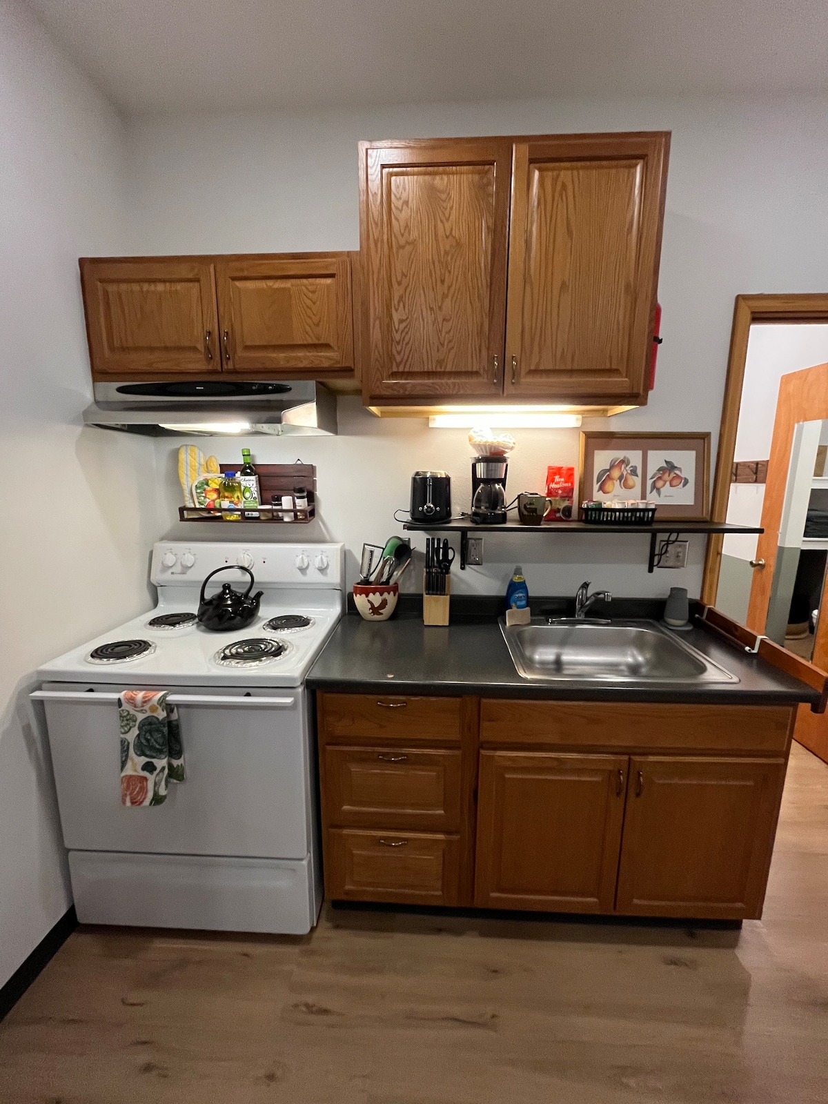 Appartament komdu fuq nett ta 'dar bi tliet sulari fil-qalba ta' Sitka. Għandha żewġ kmamar tas-sodda kull waħda b 'queen, u żewġ sufani komdi tal-ġilda (sufan sabiħ u daqs sħiħ). Il-kċina hija nofs kċina u għalhekk m 'hemmx cooker iżda tiġi mgħammra b' microwave, hotplate, kafè u kitla tat-te. L-art tagħna hija s-sular li jmiss 'l isfel u mhijiex separata b' bieb iżda għandek privatezza totali. Għandna żewġt iklieb u bitħa mimlija tiġieġ, iżda l-ebda annimal ma jidħol fil-kiri.