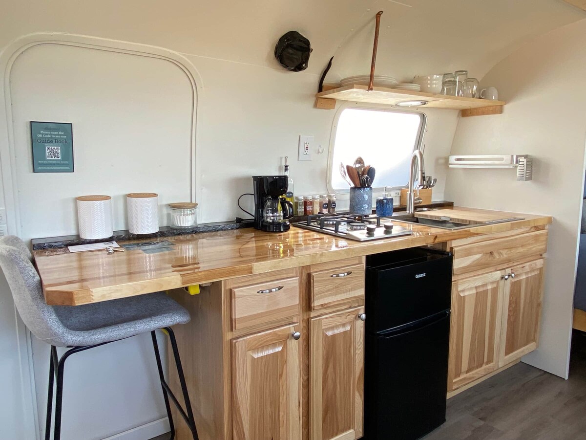 Fuq bluff li tagħti fuq l-Oċean Paċifiku u l-Bajja ta' Nesika, din Airstream immaġinata mill-ġdid b' mod sabiħ ġiet estiża biex toħloq aktar spazju u veduti mill-isbaħ. Il-pjanċa tal-art miftuħa tinfetaħ fuq veranda privata b' FOSSA TAN-NAR, HOT TUB u DOĊĊA FUQ BARRA, ideali biex tara nżul ix-xemx u tara l-istilel. Dan il-post huwa perfett kemm jekk tixtieq toqgħod u tgawdi l-propjetà sabiħa tagħna kif ukoll jekk tixtieq toħroġ u tiskopri l-kosta tan-Nofsinhar ta' Oregon.