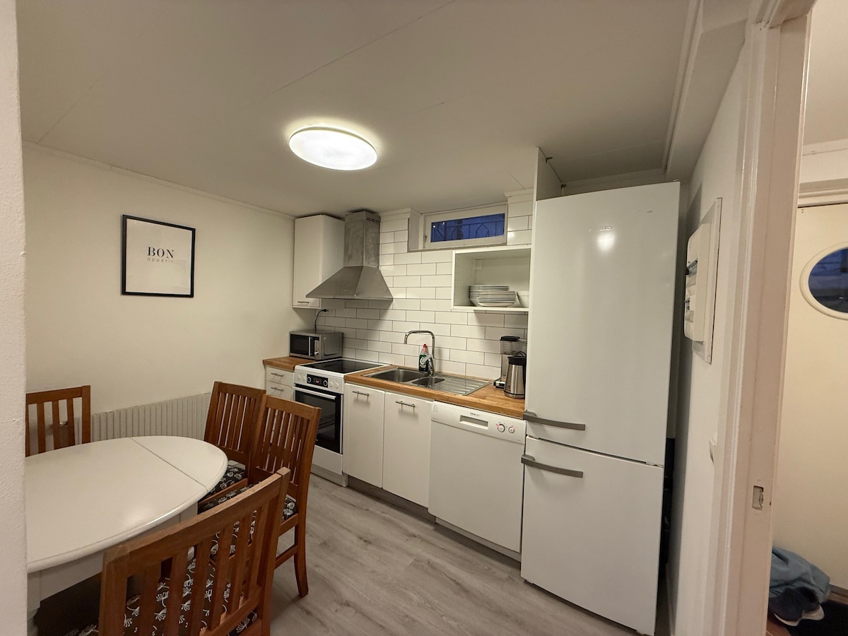 Din hija akkomodazzjoni tajba għalik li tixtieq toqgħod għal perjodu itwal. Kċina mgħammra kompletament bil-forn, forn, microwave u tagħmir biex issajjar u sservi l-ikel. Hemm magna tal-ħasil u dryer privati flimkien fil-kamra tal-banju. Tindif bil-bidla tal-bjankerija tas-sodda u x-xugamani darba fil-ġimgħa, 43'' TV b 'Chromecast, wifi veloċi. Huwa 750 metru 'l bogħod mill-Istazzjon ta' Norrvikens. Il-ferrovija tal-vjaġġaturi tieħdok sal-Istazzjon Ċentrali ta 'Stokkolma fi 22 minuta. Għadek qrib in-natura u l-lagi sbieħ.