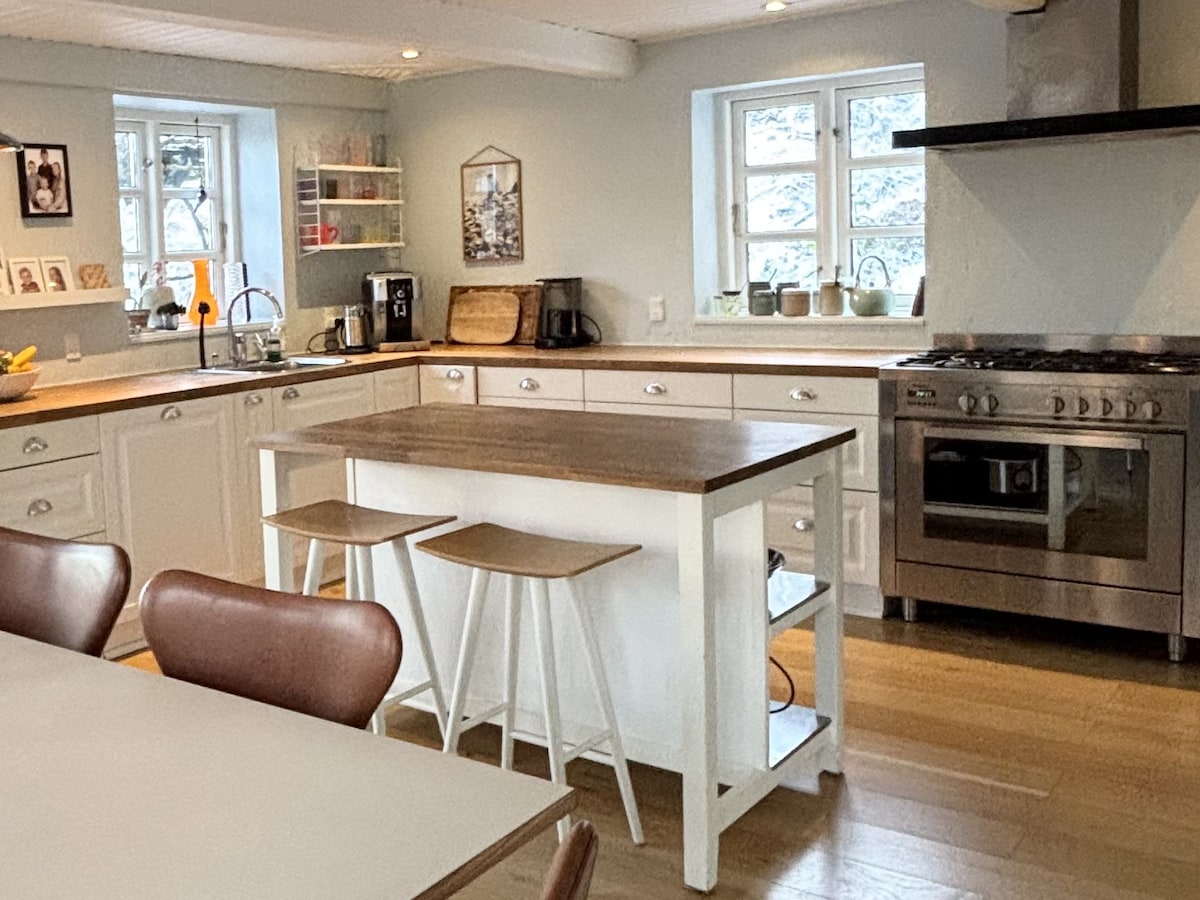 Cottage B' veduta Panoramika sal-ilma. Jacuzzi kbir fuq barra għal dar ta' 7 persuni. 68 m2 u anness ta' 12-il m2 mill-2023. Is-salott għandu cooker li jaħraq l-injam u aċċess dirett għat-terrazzin. Id-dar għandha żewġ kmamar + anness, kollha b' sodod doppji u kamra tal-banju moderna b' tisħin ta' taħt l-art. Kċina mgħammra sew b' forn tal-piroliżi ġdid u pjanċi tal-induzzjoni mill-2022. Pompa tas-sħana ċentrali, 2 kayaks tal-baħar, parkeġġ għal 2 karozzi. Qrib il-foresta. Televixin 55". Wifi bla ħlas. L-użu ġewwa Bøgeskov huwa 1500 metru 'l bogħod. L-ebda pets aċċettati.