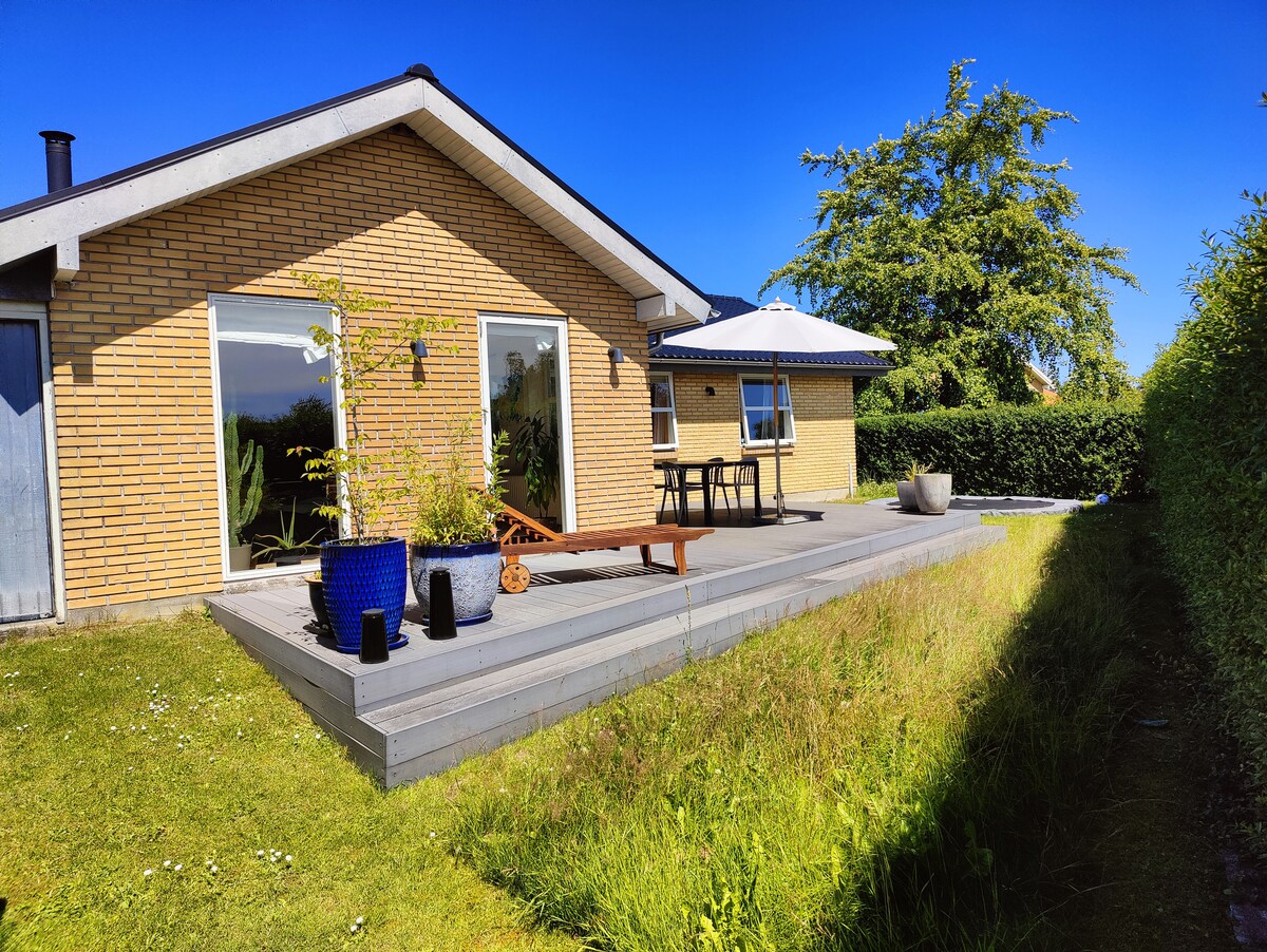Cottage lussuża ġdida ta '115 m2, bi 80 m għal bajja adattata għat-tfal. 3 kmamar tas-sodda kbar. u 2 kmamar tal-banju sbieħ. 50 m2 salott kbir li fih kċina b 'sink/dishwasher, mejda tal-ikel bi spazju għal 10 pers. żona komda fejn toqgħod bilqiegħda, stufi li jaħraq l-injam u loft kbir b' veduta tal-baħar. Is-sezzjoni tal-klijenti għandha d-daħla u l-kamra tal-banju tagħha stess. Barra hemm terrazzin kbir b 'kenn u xemx/dawl minn filgħodu sa filgħaxija. Id-dar tinsab f 'żona ta' cottage densa u komda. Perfetta għal 3 ġenerazzjonijiet, jew żewġ ħbieb bit-tfal