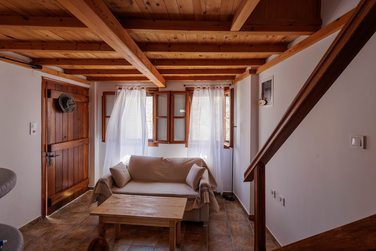 Id-dar tiegħi hija biss 250m 'il bogħod mill-bajja tar-ramel Aspous. Hija dar tipika tradizzjonali ta 'Skyrian imdawra b' bitħa kbira mimlija siġar u fjuri. L-għan tiegħi kien li noħloq post konvenjenti u affaxxinanti li jgħaqqad l-istil Skyrian flimkien ma 'elementi moderni biex nirrilassa l-vaganzi u l-kuntatt man-natura u l-baħar. Il-ħitan huma mgħottija b 'pitturi sbieħ. Dan huwa ideali għal koppja jew koppja bit-tfal biż-żona li hija sigura ħafna u ħafna dell madwar il-proprjetà.