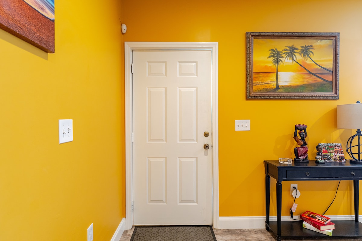 ŻOMM f 'MOĦĦOK: Il-passi mtejba fit-tindif u s-sanitizzazzjoni fil-fond qed jintużaw fil-proċeduri tat-tindif tagħna rakkomandati minn Airbnb. Is-saħħa u s-sigurtà tal-familja u l-klijenti tagħna huma importanti għalina. Żur il-familja, tivvjaġġa għax-xogħol, jew teħtieġ vaganza paċifika? Din hija suite sħiħa għall-klijenti b 'daħla privata mgħammra b' magna tal-ħasil u dryer, kamra tal-banju kbira, kamra tas-sodda spazjuża b 'sodda ta' daqs queen, spazju komdu fejn tgħix b 'sufan tal-irqad, smart Tv, u kċina żgħira mgħammra kompletament għat-tisjir u l-ħami.
