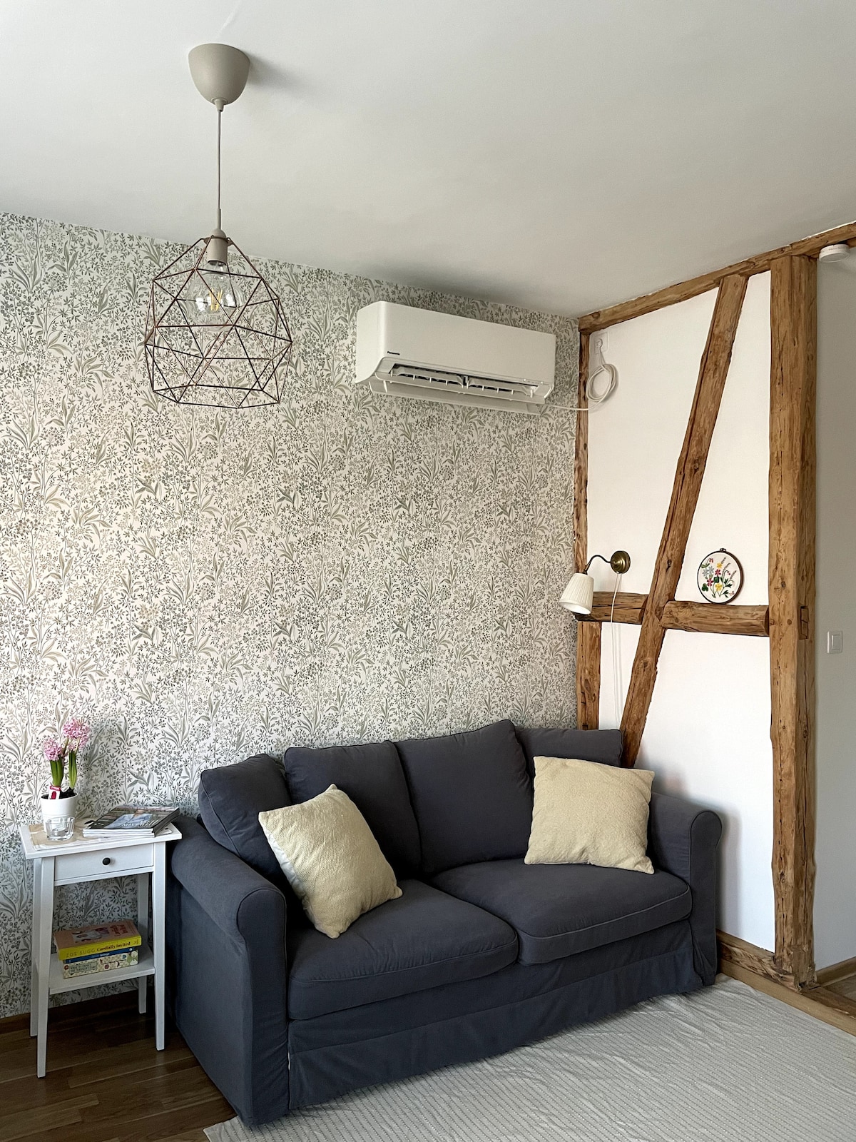 Appartament b 'sauna qrib iċ-ċentru tal-belt. 10 minuti mixi' l bogħod mill-Pjazza tal-Belt. 5 minuti bogħod mill-istazzjon tal-ferrovija. L-appartament għandu spazju fejn tgħix b 'fireplace u kantuniera tal-kċina, kamra tas-sodda 1 u kamra tal-banju b' doċċa u sauna żgħira. L-appartament jinsab fl-ewwel sular u għandu daħla privata. Fil-kċina se ssib cooker, friġġ żgħir, tagħmir bażiku tat-tisjir u oġġetti tal-mejda.