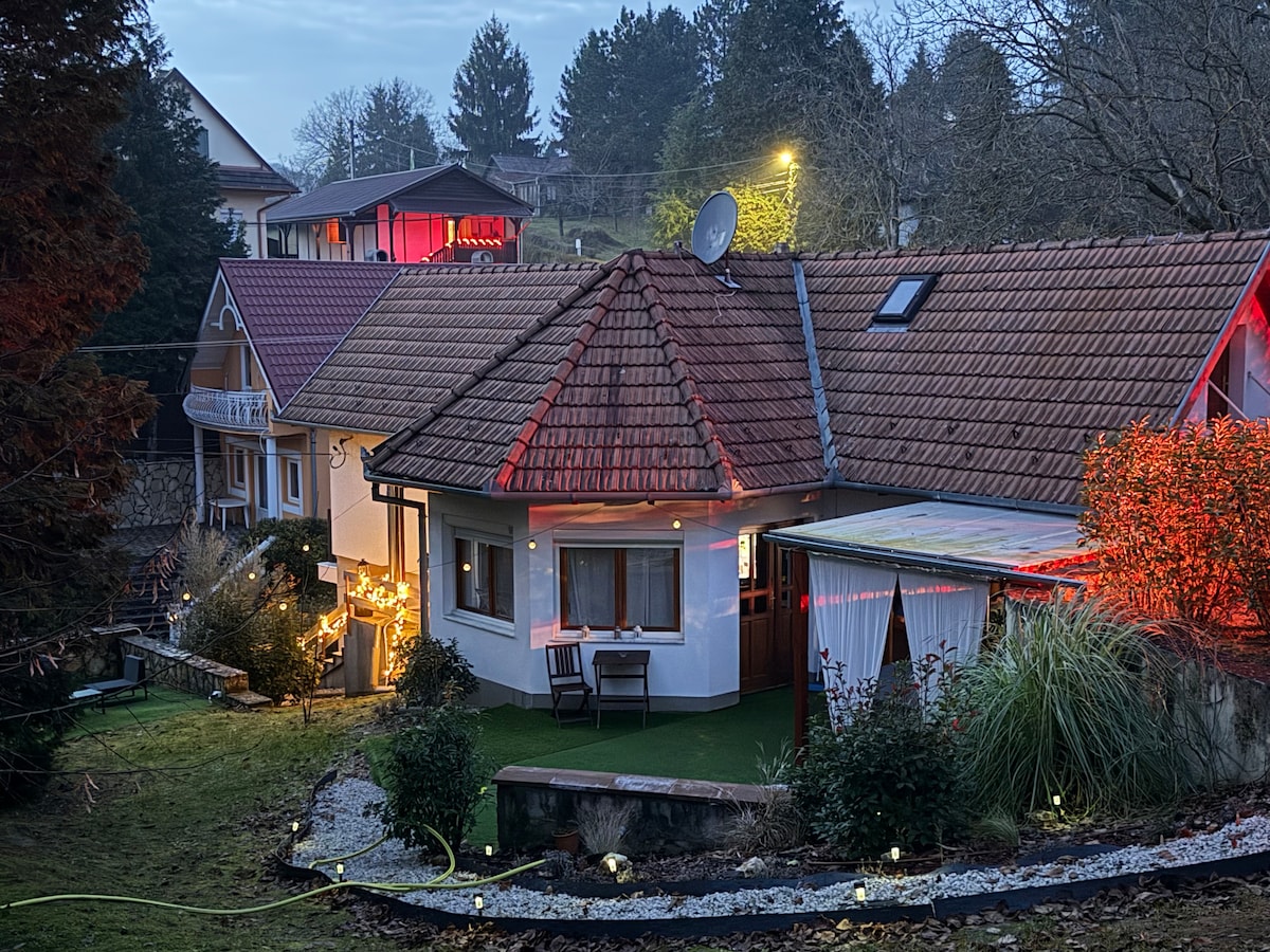 Cozy forest lodge with private jacuzzi, ideal for couples or remote workers. Superfast WiFi, free e-bikes, smart TV (Netflix, Prime, Disney+, HBO Max, Sky), PS4, AC, fire pit, grill & smoker, picnic basket, full kitchen (air fryer, coffee maker). Located in a quiet dead end among pine trees, birds, squirrels & deer. Private garage. 5 mins to Zalakaros Spa, 25 km to Lake Balaton. Work, relax & recharge!