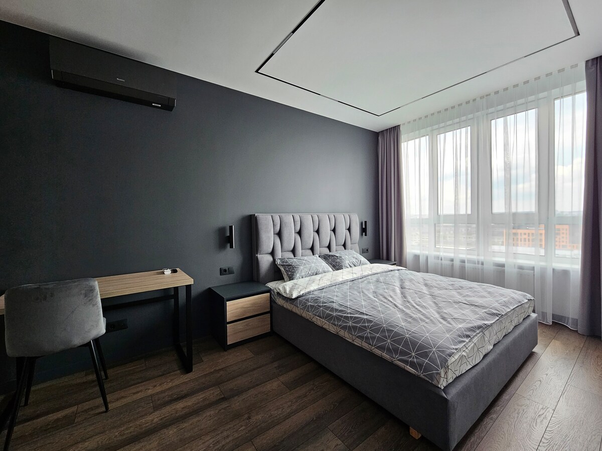 Oqgħod fil-post uniku u komdu tagħna. Mhux 'il bogħod (3.5 km) miċ-ċentru ta' Lviv, se ssib żona tal-barbikju, post kalm b' parkeġġ f' żona magħluqa u ċċarġjar għal karozza tal-elettriku minn żbokk tad-dar. Appartament ta' stil Skandinav b' doċċa, arja kkundizzjonata, magna tal-ħasil u dishwasher f' lodge separata. Hemm kenn. Fiż-żona hemm park, stadju, ċentru tax-xiri u tad-divertiment "Spartak", St. Panteleimon' s Fast Help Hospital u Sptar tat-Tfal fuq Orlik Street.