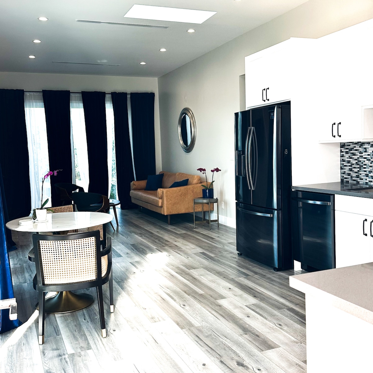 Skopri disinjatur b' 2 sodod/kamra tal-banju waħda, vaganza ta' 750 pied kwadru fejn l-istil jilħaq is-sostenibbiltà. Kull rokna hija mfassla apposta b' art tal-konkrit illustrata, oġġetti tal-ġebel artiġjanali, lampi tal-melħ sħan u affarijiet essenzjali għall-ħajja ekoloġika. L-ispazju jinħass ħafif, miftuħ u mgħammar b' kollox biex iż-żjara tiegħek tkun bla xkiel. Ċentru perfett għall-professjonisti tal-ivvjaġġar jew għall-familji li jixtiequ jiskopru l-bajjiet ta' Malibu u l-punti ewlenin ta' Los Angeles, filwaqt li jgawdu iktar spazju u valur barra l-belt.