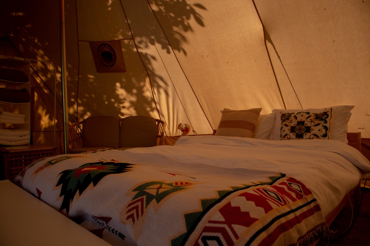 Un cort glamping la Delta Sunrise îmbină farmecul naturii cu confortul unei camere de hotel. Dotat cu pat matrimonial, electricitate, lumină ambientală și terasă proprie cu vedere spre lac, este locul ideal pentru a te bucura de liniște.