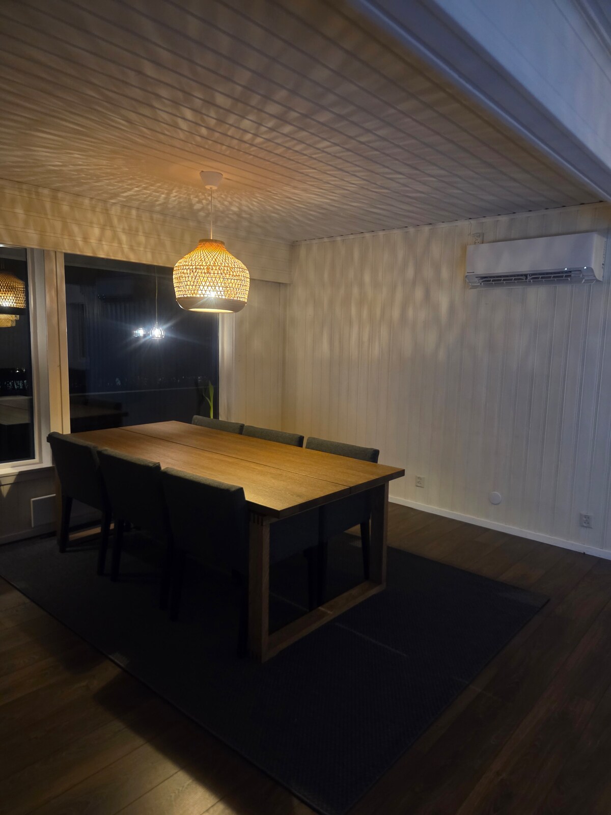 Dar kbira li għadha kif ġiet irranġata madwar 600 m. miċ-ċentru tal-belt, Hurtigruten u ħanut tal-merċa. Salott kbir u mejda tal-ikel bi spazju għal 8-10 persuni. Kċina mgħammra sew, kamra tal-banju b' doċċa u żewġ tojlits separati fit-tieni sular. Veranda kbira bil-possibbiltà li tuża grill tal-gass. 3 ikmamar tas-sodda b' sodod doppji, possibbli b' żewġ sodod singoli f' waħda mill-kmamar. 2 ikmamar tas-sodda b' sodod ta' 120 ċm. Wieħed għandu aċċess permezz ta' taraġ ftit wieqaf.
