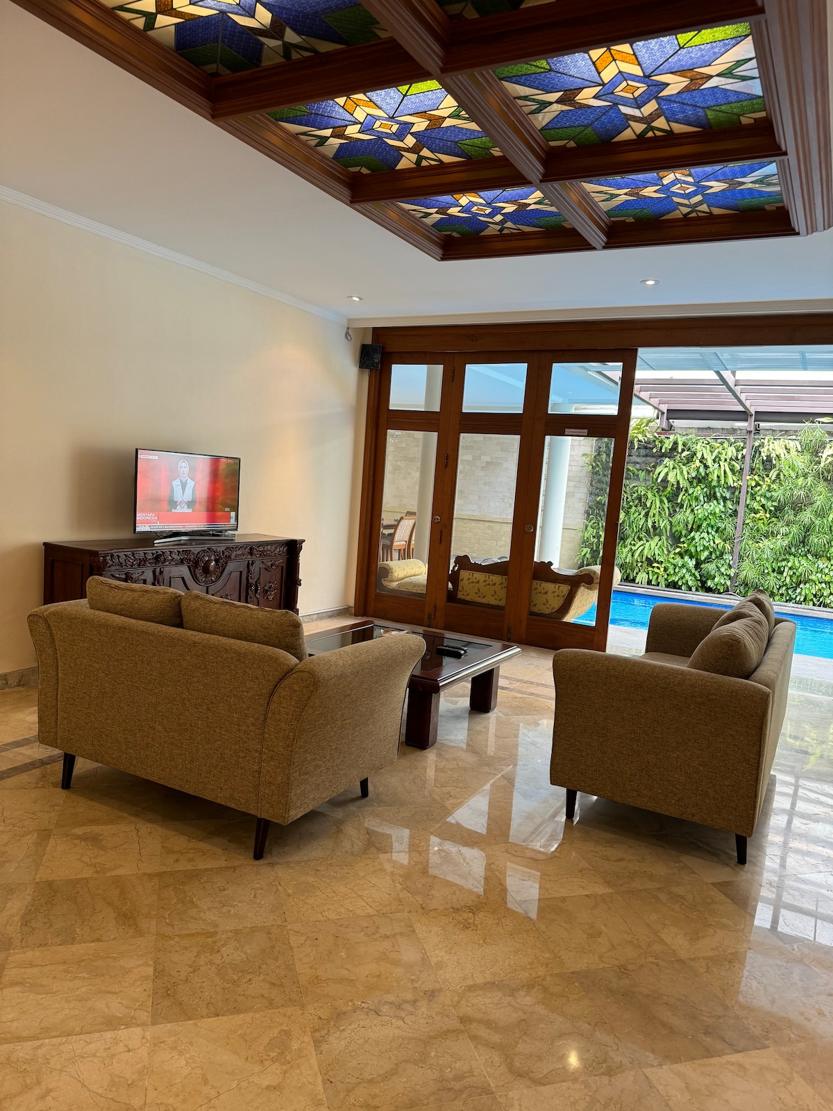 Villa tropikali f 'nofs Kemang prestiġjuż. Il-villa għandha pixxina b 'pixxina kiddie għat-tfal bi ġnien vast li għandu gazebo imdawwar b' għadira tal-ħut. Id-dar reċentement ġiet rinnovata biex b 'hekk hija friska ħafna u sabiħa. Il-kċina hija mgħammra sew. Kull kamra għandha l-kamra tal-banju en suite u l-arja kkundizzjonata tagħha filwaqt li xi kmamar għandha l-banju tagħha stess. Huwa l-post perfett għal xatba tal-familja li tinsab ħdejn Kemang Raya fejn issib ristoranti, ħwienet u kafetteriji sbieħ.