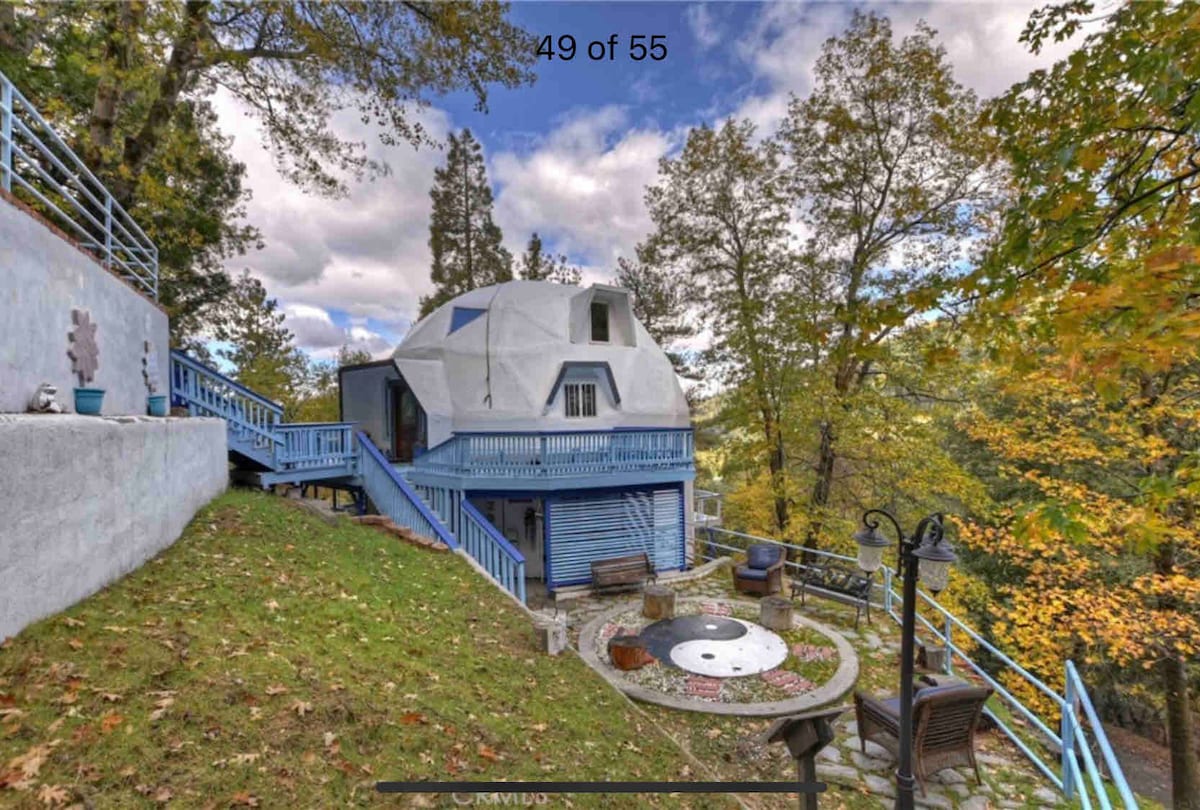 Kabina Geodesic Dopja ta 'Nofs is-Seklu, hija ispiraw lil Buckminster Fuller kabina bil-kumditajiet kollha! Mixja qasira lejn il-belt. Il-Koppla hija spazjuża 2688 SF, 3 kmamar tas-sodda, 2.5 kmamar tal-banju b 'veduti mill-isbaħ, kċina miftuħa, għamara vintage, soqfa ġeodesiċi kbar b' tamboċċi trijangolari! Librerija sabiħa u tgeżwir madwar il-gverta biex tħares lejn l-istilel. Idyllwild hija maġika. Mhux il-kiri medju tal-vaganzi tiegħek. Agħmel l-esperjenza tiegħek @ idyllwildgetaways! Rati speċjali ta 'matul il-ġimgħa għal folk jew koppji waħedhom biss (Mon -Weds)!