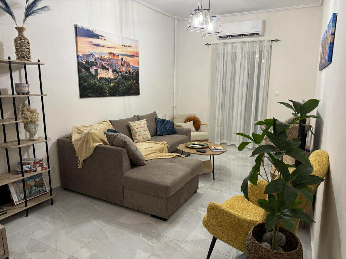 Appartament modern, rinnovat kompletament fil-bidu tal-belt, jilqa' sa 5 persuni u joffri kumdità u funzjonalità. Għandha 2 kmamar tas-sodda, sufan sodda, TV, magna tal-ħasil, kċina mgħammra b'kollox u bitħa ideali għall-familji jew gruppi. Parkeġġ bla ħlas fuq il-post. Postijiet u attivitajiet: -950m mis-supermarket ta' Sklavenitis. - Km 'il bogħod mill-pjazza ċentrali. -600m mill-istatwa ta' Leonidas. - 1.9 km 'il bogħod mill-Mużew taż-Żebbuġ u ż-Żejt taż-Żebbuġ Grieg
