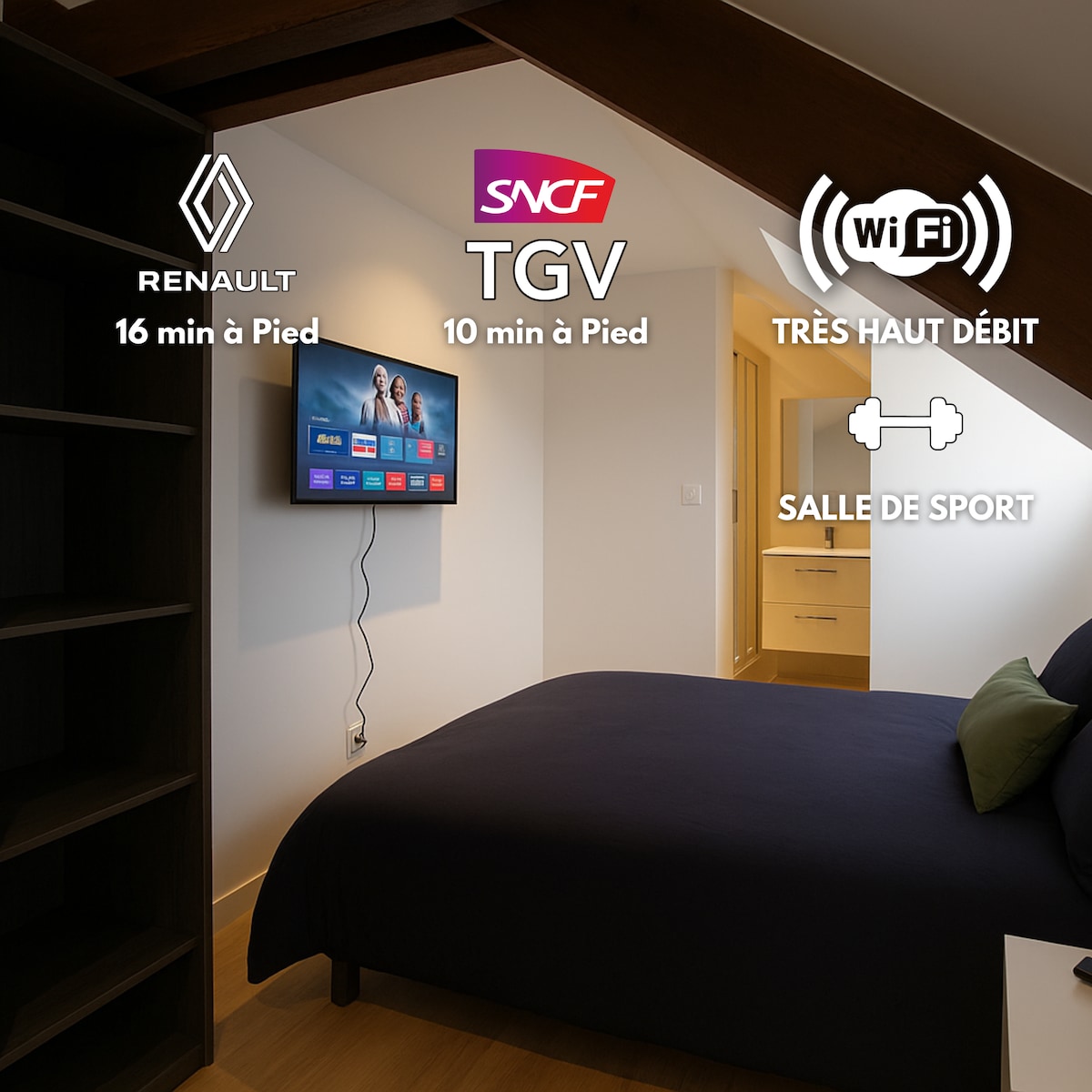 Notre maison de 240 m² offre un niveau de confort introuvable ailleurs en location au Mans : - 9 chambres doubles, chacune avec sa salle de douche privative Personne n’a à partager la salle de bain, même dans un grand groupe ! - Literie de qualité, rangements et vraie intimité dans chaque chambre - Idéal pour groupes mixtes, collaborateurs, amis ou familles recomposées Ce concept permet à chacun de vivre à son rythme, tout en profitant du plaisir d’être ensemble. Jusqu'à 18 personnes possibles