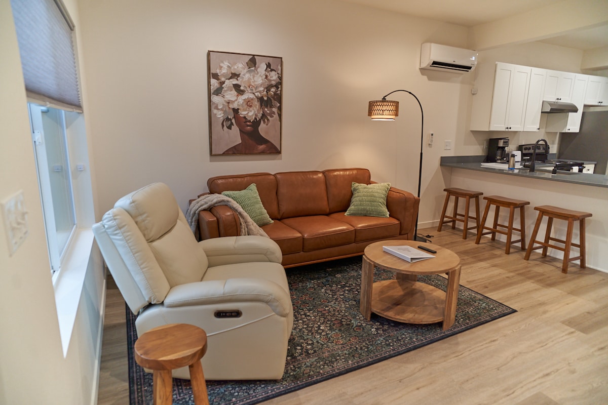 Studjo ġdid fjamant, konformi mal-ADA, addattat għall-pets fil-qalba ta' Kendall Yards, imqabbad mal-Birrerija Uprise u turġien mill-ħwienet u l-Mogħdija Centennial. Gawdi bjankerija tas-sodda organika, kafè premium, WiFi bla ħlas u xogħlijiet tal-arti lokali minn Ben Joyce Studios. Tqassim b' kunċett miftuħ b' sodda Murphy ta' daqs queen, kamra tal-banju sħiħa b' doċċa mixgħula u kċina żgħira b' friġġ żgħir u żona tal-bar. Żomm f' moħħok: Din l-unità tinsab fuq birrerija, għalhekk jista' jinstema' storbju minimu. Is-sigħat kwieti huma osservati mill-10 PM sas-7 AM.