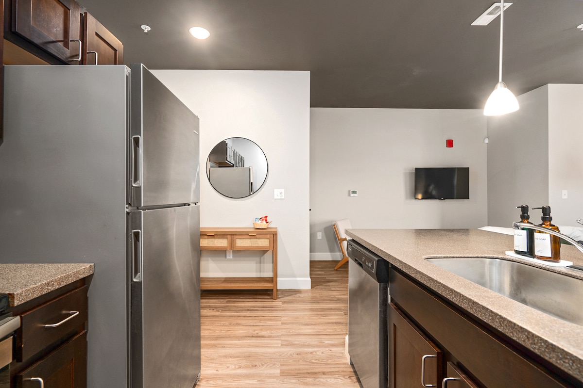 Oqgħod fil-qalba taċ-ċentru ta' Lawrence f'dan l-appartament privat modern, blokk wieħed biss 'il bogħod minn Massachusetts Street. Imxi sal-aqwa ristoranti, ħwienet, divertiment ta' billejl u avvenimenti ta' KU. L-ispazju għandu sodda queen komda, sufan li jinfetaħ u kċina mgħammra b'kollox—ideali għal żjarat qosra jew twal. Irrilassa fil-hot tub tal-bini jew ħu n-nifs ħin ta' ħin ħdejn il-fuklar ta' barra waqt li tħares lejn inżul ix-xemx sabiħ ta' Kansas.