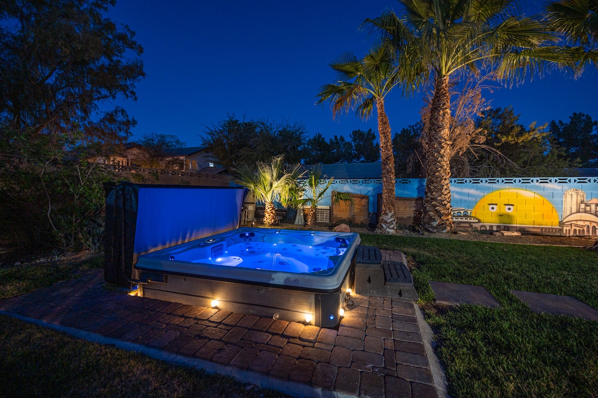 Dar f 'Las Vegas li għadha kif ġiet rinnovata' l bogħod minn darek b 'oażi ta' resort pool, ġonna personalizzati għal fire pit, jacuzzi modern ġdid b 'aktar minn 100 jets u faċilitajiet tal-ilma għalik biex tirrilassa u tgawdi, żona ta' terrazzin BBQ fil-kċina fuq barra, u żona divertenti għal-logħob fuq barra! Din id-dar għal familja waħda b 'każita tinsab ftit minuti' l bogħod mill-avventuri fuq barra, mill-eċitament tal-istrixxi u mill-attrazzjonijiet lokali maħbuba. Gawdi stil Bohemjan modern rilassat b 'dettalji maħsuba sew biex tiżgura żjara komda u memorabbli.