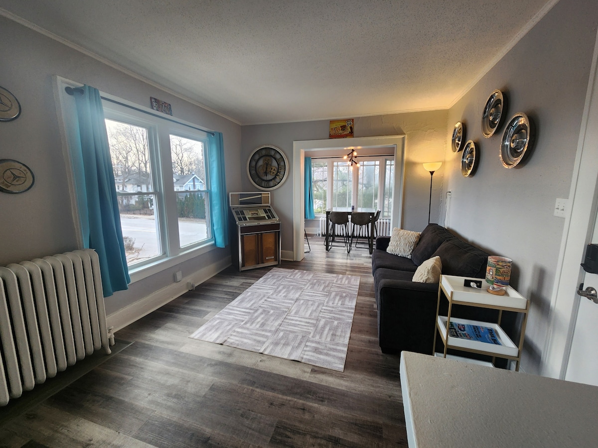 L-appartament jinsab fiċ-ċentru u jippermetti aċċess faċli għal dak kollu li Springfield għandu x 'joffri. Żewġ kmamar tas-sodda kbar b 'sodod doppji' queen' u salott kbir. Il-kċina hija mgħammra kompletament bl-affarijiet essenzjali kollha. Nistgħu nilqgħu faċilment sitt klijenti b 'saqqu tal-arja ta' daqs reġina. Għandna wkoll pack-n-play disponibbli għall-klijenti żgħar. Wi-Fi, smart TV, parkeġġ off-street u veranda ta 'quddiem b' dwal Edison u swing tal-porch. Aħna kunfidenti li se tgawdi ż-żjara tiegħek. * l-ebda PARTIES MHUMA PERMESSI *