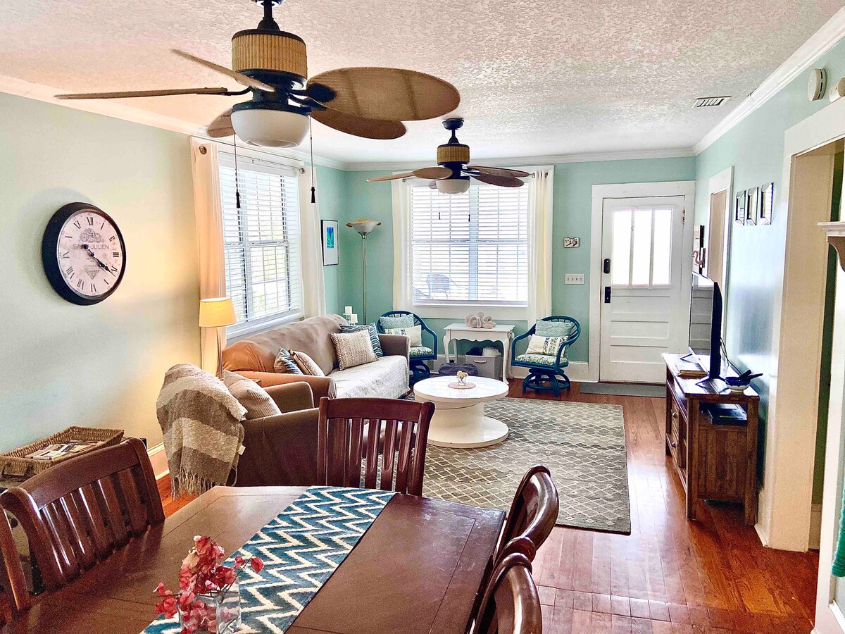 Din il-cottage kostali affaxxinanti tal-1940, li tinsab fil-viċinat storiku ta 'Lighthouse, hija distanza faċli biex tivvjaġġa lejn il-Fanal, Alligator Farm, mini-golf, kafetteriji u aktar! Hija biss mixja ta '0.8-mi lejn il-Pont tal-Iljuni, fejn tista' timxi fuq il-Bajja saċ-ċentru ta' Santu Wistin. Ma stajtx titlob post aħjar! Huwa fuq il-Gżira ta 'Anastasia għalhekk int mixja qasira/rikba bir-rota/karozza mill-bajja u Ampitheater. Huwa akkoljenti, adattat għall-pets u t-tfal b 'bitħa kbira fuq wara. Kayaks u roti disponibbli!