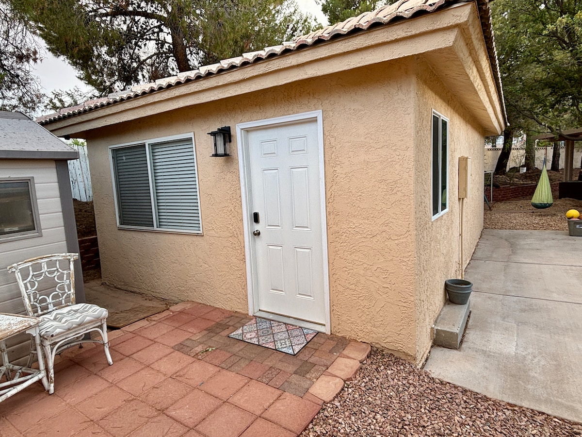 Il-casita lussuża tagħna għandha sensazzjoni Toskana sħuna. Huwa jinsab fil-qalba tar-rikreazzjoni tan-Nofsinhar ta 'Utah, St. George. Din hija residenza kompletament separata u privata mid-dar ewlenija b' daħla għaliha stess. Is-sodda hija sodda doppja 'Queen'. Viċinat kwiet. Aċċess faċli għal mixjiet fit-tul, ċikliżmu fuq il-muntanji, 4 roti u l-Park Nazzjonali ta 'Zion. Daħla privata. Banju Privat. Mini-Fridge.
