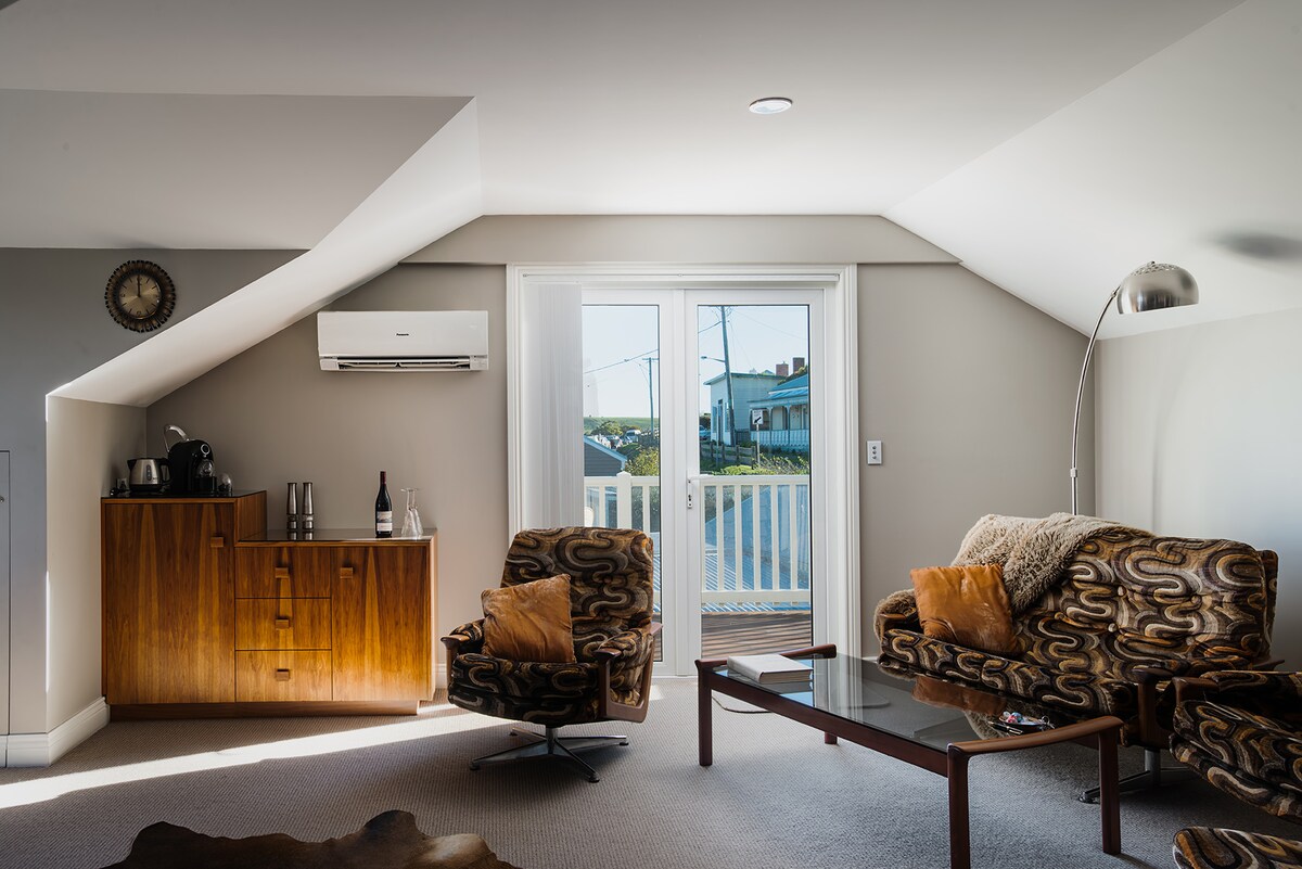 Spazju kontemporanju mimli dawl b 'affarijiet Mediterranji. Żewġ sodod singoli ta 'daqs king u sodda żejda ta' ġurnata għat-tielet klijent (il-prezz huwa għal żewġ persuni t-tielet sodda se jeħel $ 40 żejda). Bitħa privata. Kċina mgħammra b 'kollox u ambjent imdawwal għall-kwiet bi twieqi doppji bil-ħġieġ li jħarsu fuq il-Ġonna Gutteridge u x-Xmara Inglis. Aċċess qasir faċli għall-belt li għandha ħwienet tal-kafè ikliet tajbin tal-pub u ħut u ċipep friski mill-Wynyard Wharf Jista 'jkun hemm ikla permezz ta' arranġament minn qabel.