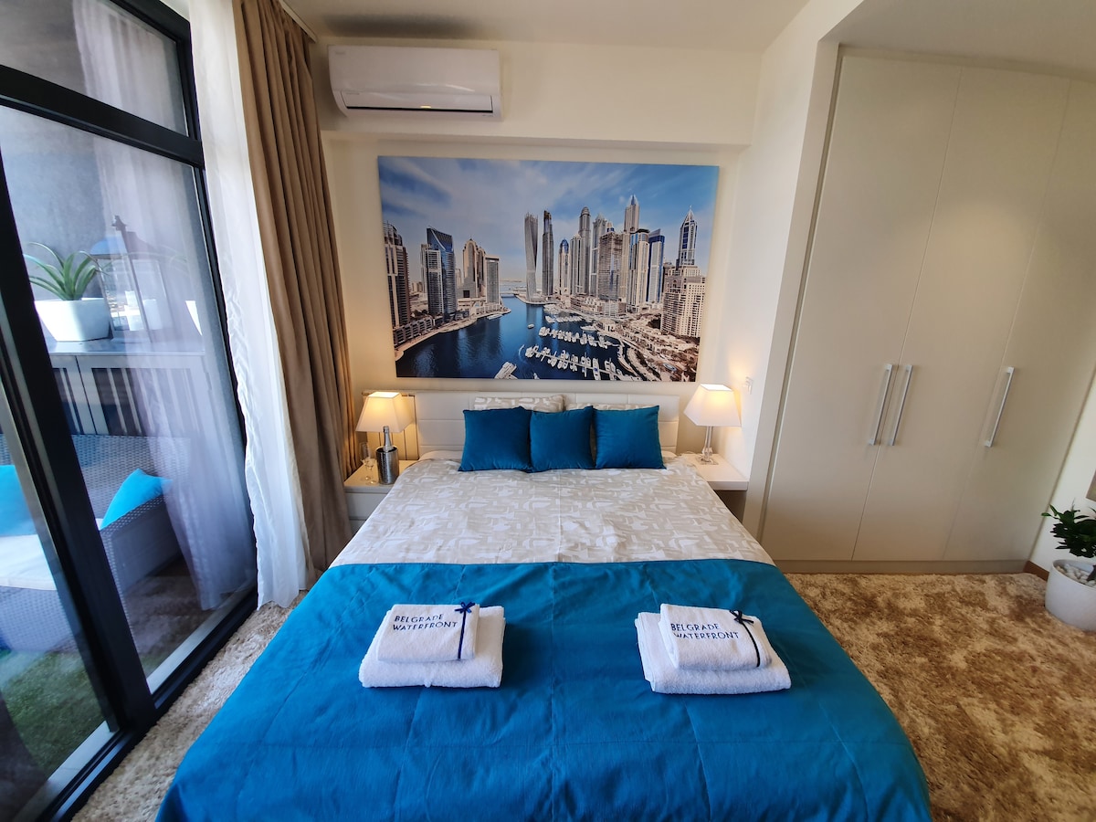 Appartament lussuż fil-post esklussiv ta 'Belgrad Waterfront fil-qalba ta' Belgrad, xemxi u mdawwal b 'veduta tax-xmara. L-appartament għandu kamra tas-sodda waħda b 'sodda doppja' king '(160*200), LCD TV, WI-FI, kċina mgħammra b' kollox, magna tal-ħasil u kamra tal-banju waħda b 'doċċa. B 'mixja sabiħa fuq ix-Xmara Sava b' ħafna ristoranti u kafetteriji, kif ukoll park ta' Belgrad li joffri attivitajiet rikreattivi se jagħmlu ż-żjara tiegħek aktar komda u divertenti. Is-sid jitkellem bis-Serb, bl-Ingliż u bit-Taljan.