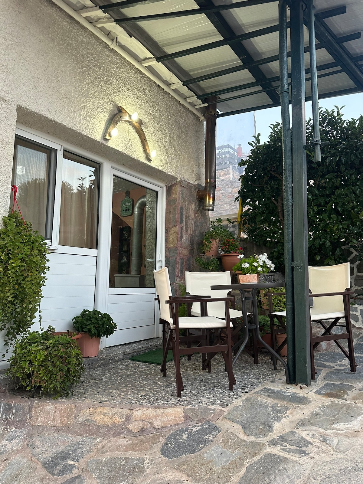 Gawdi l-affarijiet sempliċi f' dan il-post fejn toqgħod serju u ċentrali. L-appartament tagħna jinsab fit-triq ewlenija li taqsam ir-raħal ta' Kato Steni. Hija mħejjija fuq barra bil-ġebel Dirfion,bil-kuluri tal-ħamrija ta' Dirfys u n-natura madwarha. In-naħa ta' wara tal-appartamenti tħares lejn ix-xatt ta' Steni,mimlija siġar għoljin, siġar tal-ġewż,rampi u siġar taċ-ċirasa eqreb lejn ix-xmara.