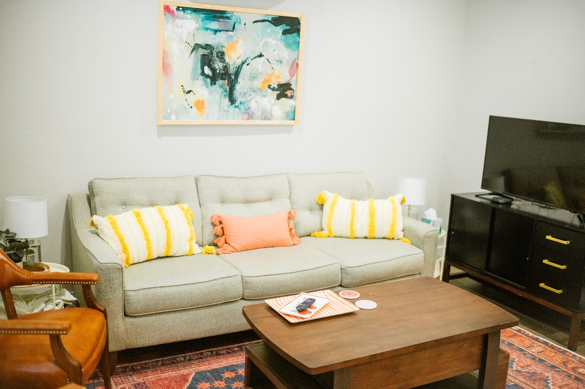 Ejja strieħ u ġedded għaż-żjara ta 'Stillwater tiegħek f' The Bungalow! Tinsab biss 4 minuti 'l bogħod mill-kampus tal-Istat ta' Oklahoma u 2 minuti 'l bogħod minn Downtown Stillwater. Gawdi s-sodda komda 'King' Stearns u Foster b 'lożor ta' lukandi lussużi. Irrilassa u idħol fis-servizzi ta 'streaming tiegħek fuq ir-Roku tagħna, b' aċċess għal wifi gig 1. Sajjar fil-kċina tagħna bi stil ta 'agrituriżmu mgħammra b' kollox, gawdi l-kafè ta 'filgħodu tiegħek fil-veranda l-ġdida tal-injam tal-cedar. Magna tal-ħasil u dryer sħiħa fuq il-post. Huwa l-pjaċir tagħna li nilqgħuk!