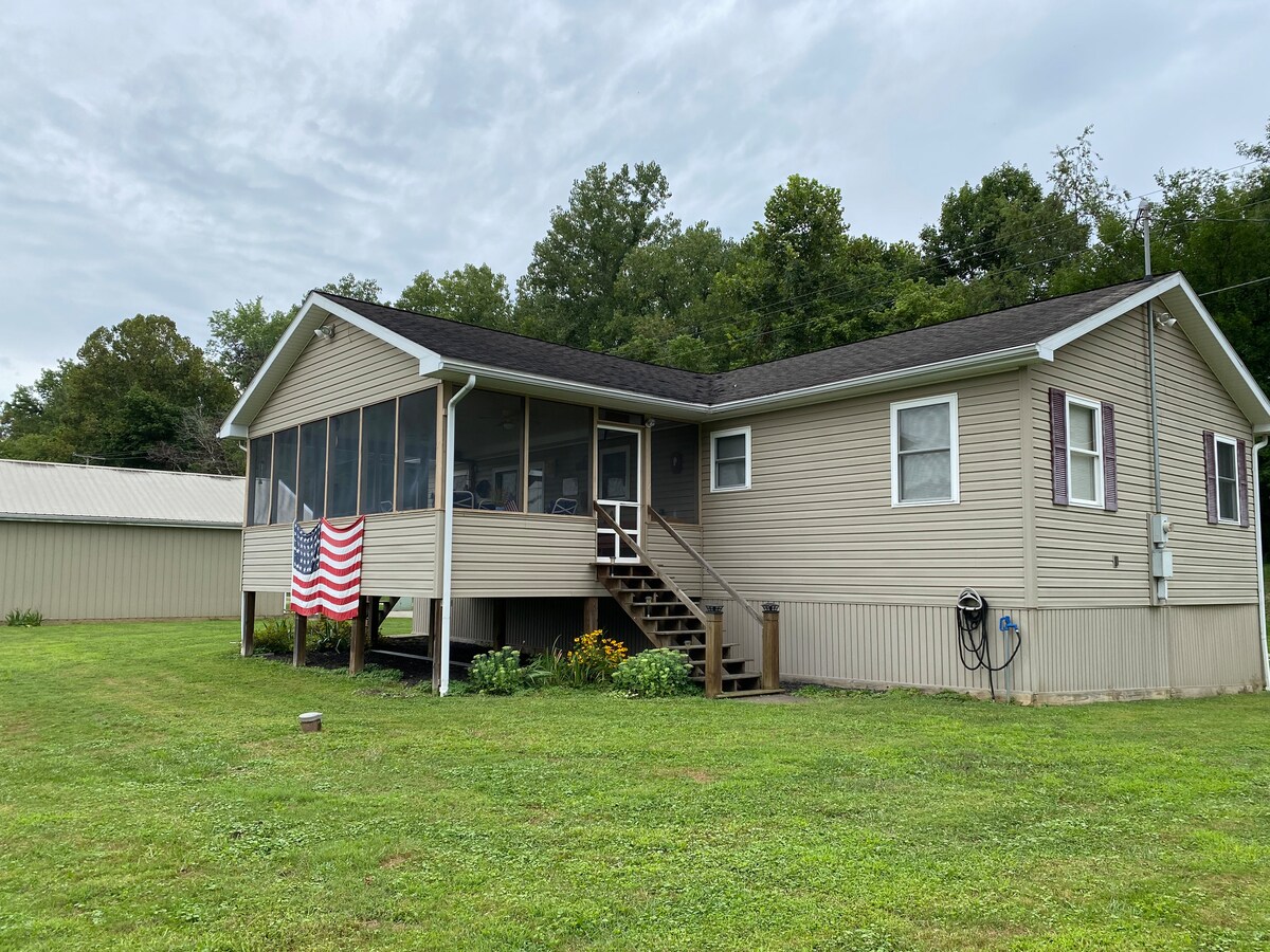 Up to 10 Bald Eagles sighted on the river every day this winter! High speed internet and smart TV. 5 person hot tub! Originally a Lodge for a Boy Scout Camp in the 1930s, the Cottage is a wonderful destination for those seeking a quiet country retreat. Located near Stockport, there is direct access to the Muskingum River via a short walking trail. Fishing (with license) permitted at one of the best spots on the River. There are over 2 miles of maintained hiking trails on the property