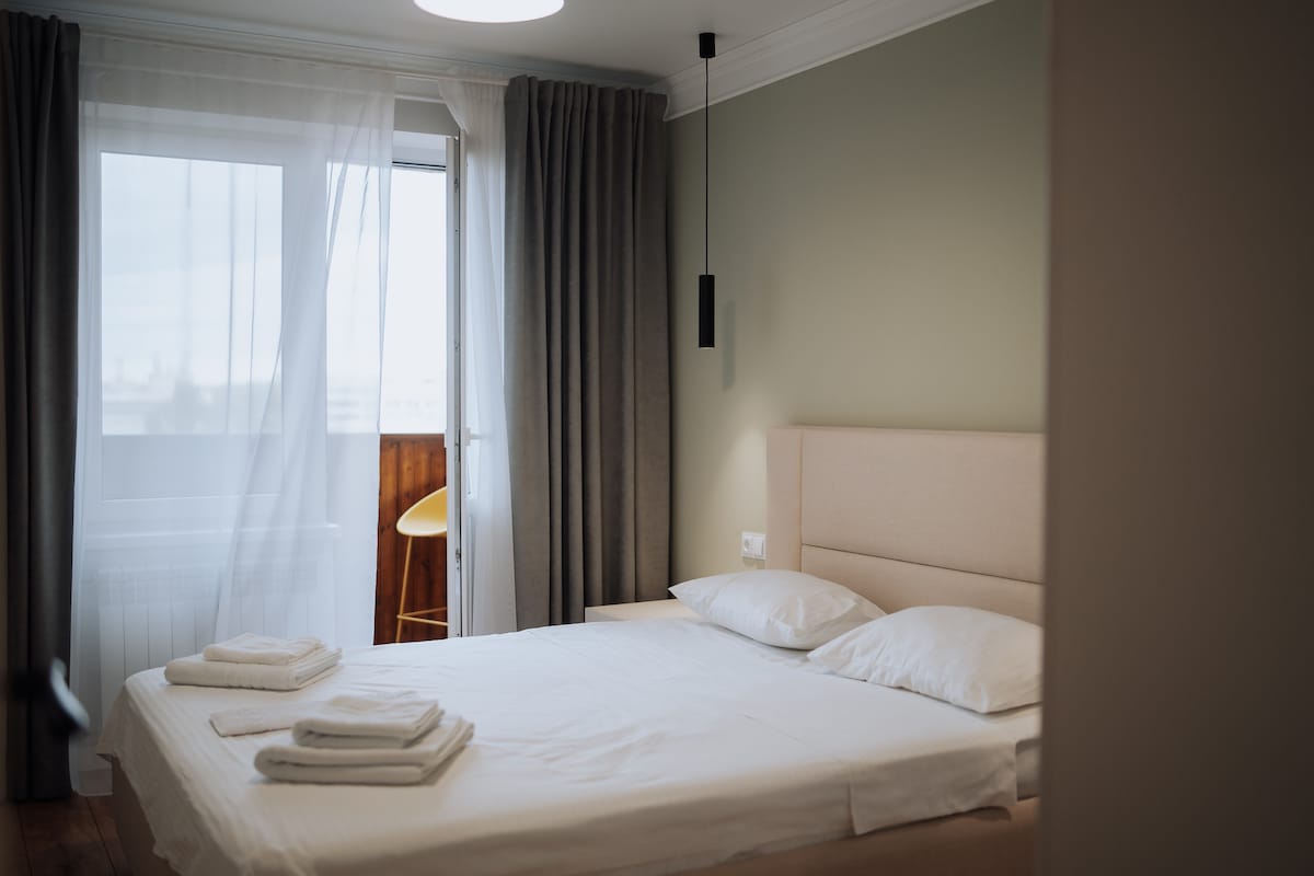 This apartment is bright and welcoming, located in a new building, with 1 bedroom and a living room, designed for your comfort. We welcome you with: • Impeccable cleanliness • High-speed Wi-Fi • Quality towels • Complimentary water, tea, and coffee • Air conditioning • Independent self check-in In the bedroom, you’ll find fresh linen for a restful sleep, while in the living room you can relax on the comfortable sofa, enjoying the warm and modern atmosphere of our space.