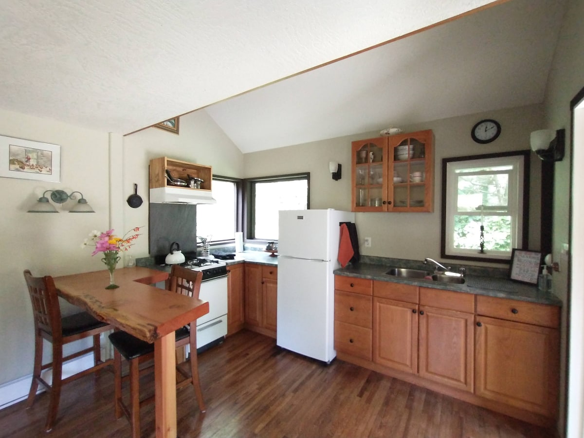 This very private cottage is clean, bright and comfortable. A wood stove and all natural wood interior with vaulted ceiling making it bright, comfortable, spacious, and inviting. The peace of the forest is rejuvenating and the outdoor bath tub for two a great joy. Beautiful hikes, kayaking, mountain biking and whale watching opportunities abound, and on rainy days, an eclectic selection of dvds. a A wonderful place to unplug for a few days. Your hosts Jerry Christine are available to assist you